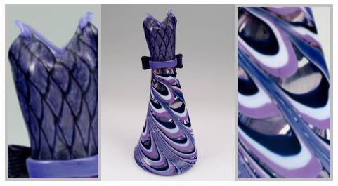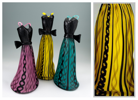 Working with Paul Swartwood at Glen Echo Glassworks, I made miniature glass dancing dresses - or ball gowns. With these, I hoped to capture a sense of motion, fluidity and shifting rhythms of shapes. Working now in dance, clay and watercolor, these elements are still at the heart of my creative journey.